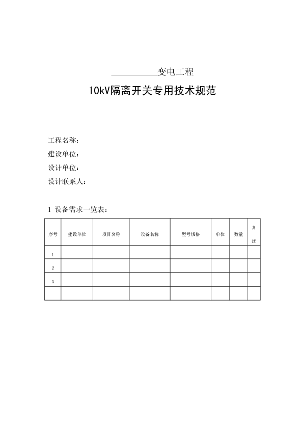 10kV环网柜(空气绝缘型)专用技术规范 doc