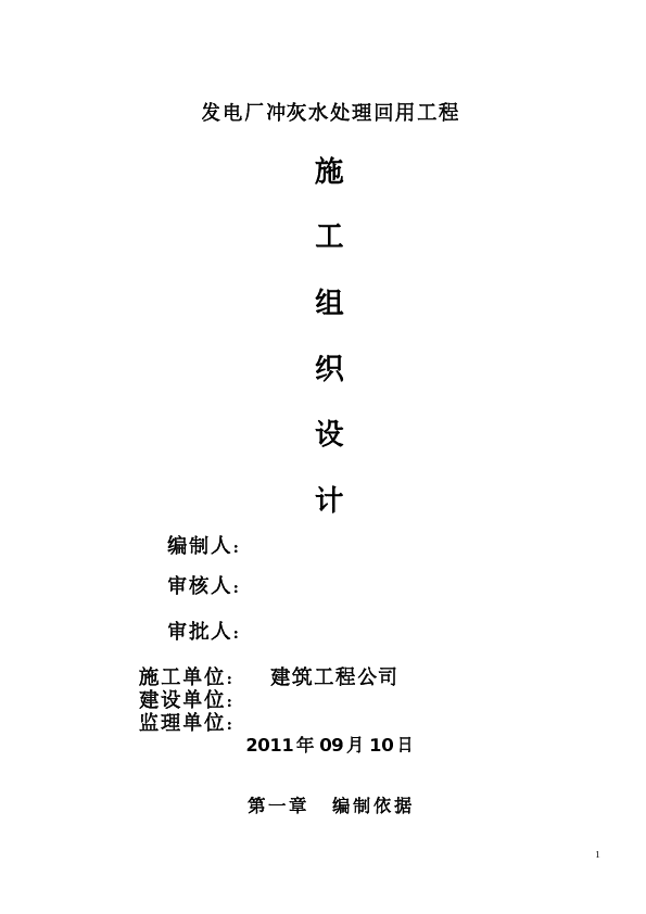 工业水池及周围设施的整体施工组织设计文件,列出了编制依据,工程概况,施工组织架构,施工质量目标工期和安全生产目标,混凝土浇筑的配合,设计单位和监理单位之间的协调,施工前期的人员和设备、材料的,供电、给排水的安排,包括具体供电和给排水方案,包括后期钢筋铺设混凝土浇筑过程,土方回填,以及现场施工地安全文明措施和环保措施等,可以作为以后单位施工组织设计参考,很好的范例。