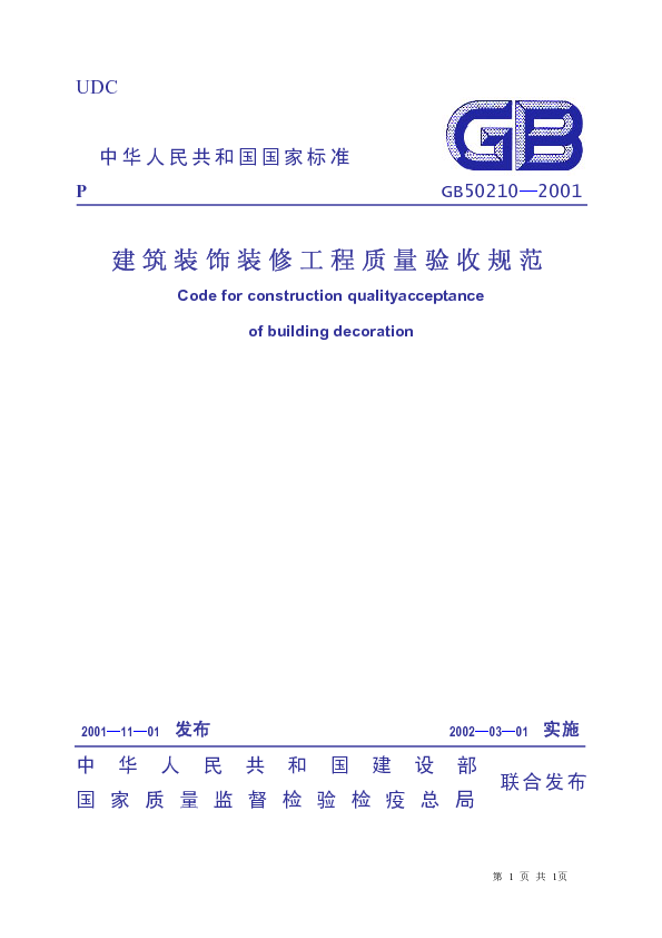建筑装饰装修工程施工质量验收规范(GB50210-2001)