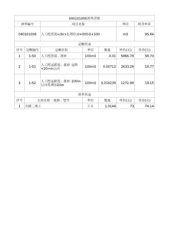 040101006 人工挖淤泥1.部位:0+000-0+100