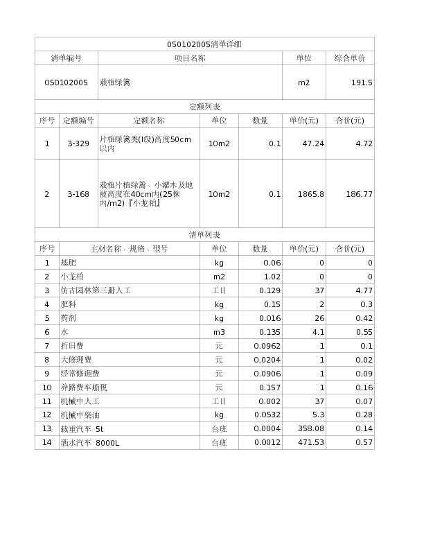 050102005 栽植绿篱