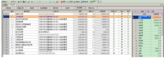 1.4 其他费用:包括前期的工作费、工程监理费、拆迁补偿费、竣工验收费、业主管理费,氿上云计价软件直接设置好取费模板,用户在使用过程中,根据需要调整相应的费用即可,如图: