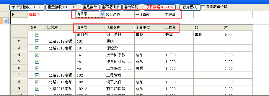 您好,打开氿上云公路专版,新建工程,在建安工程费窗体“接收EXCEL”,选择要导入的招标文件或工程量清单,查看一下表头是否匹配,如图一、图二